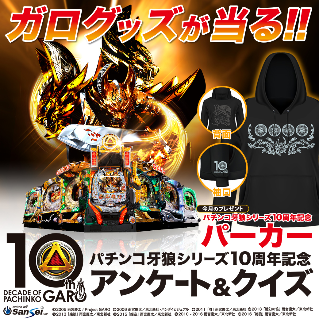 - 2019.09.27「DECADE OF PACHINKO GARO」第11回パチンコ牙狼シリーズ10周年記念アンケート&クイズを開始!!